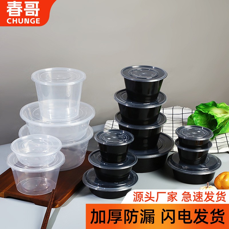 使い捨ての出前円形pp弁当箱透明蓋付きプラスチック厚手弁当箱ホテルファストフード大箱盆包装