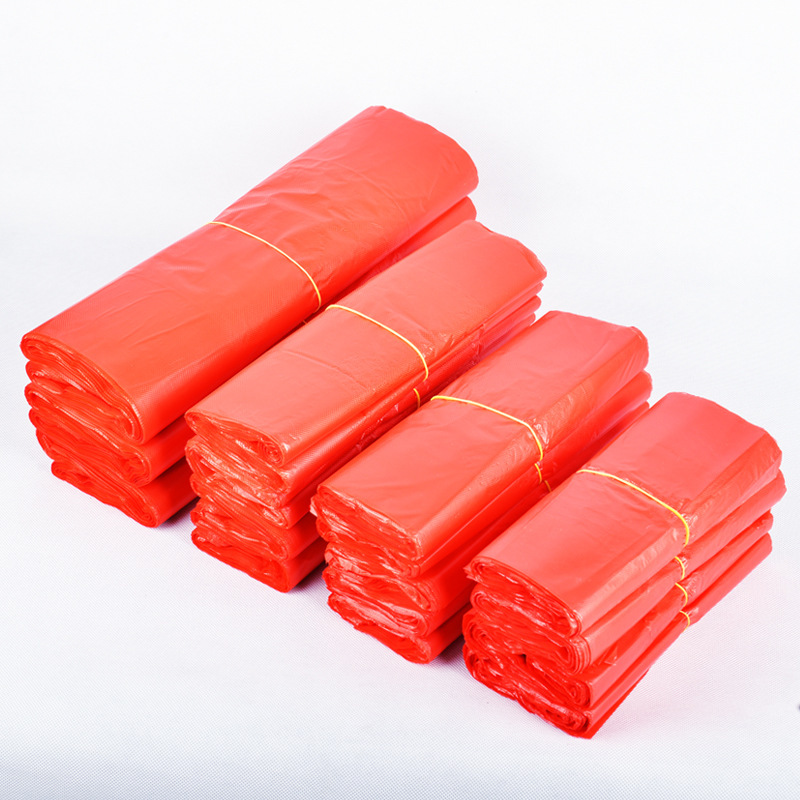 プラスチックベストの赤いレジ袋の中の大きいサイズの携帯用使い捨て用品の果物と野菜の包装は便利に縛られます。
