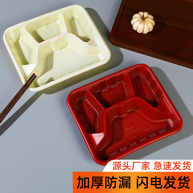 メーカーの使い捨ての分格のプラスチックの弁当箱のファーストフードのホテルのテイクアウトの包装箱は蓋の四角形の厚い弁当箱があります。