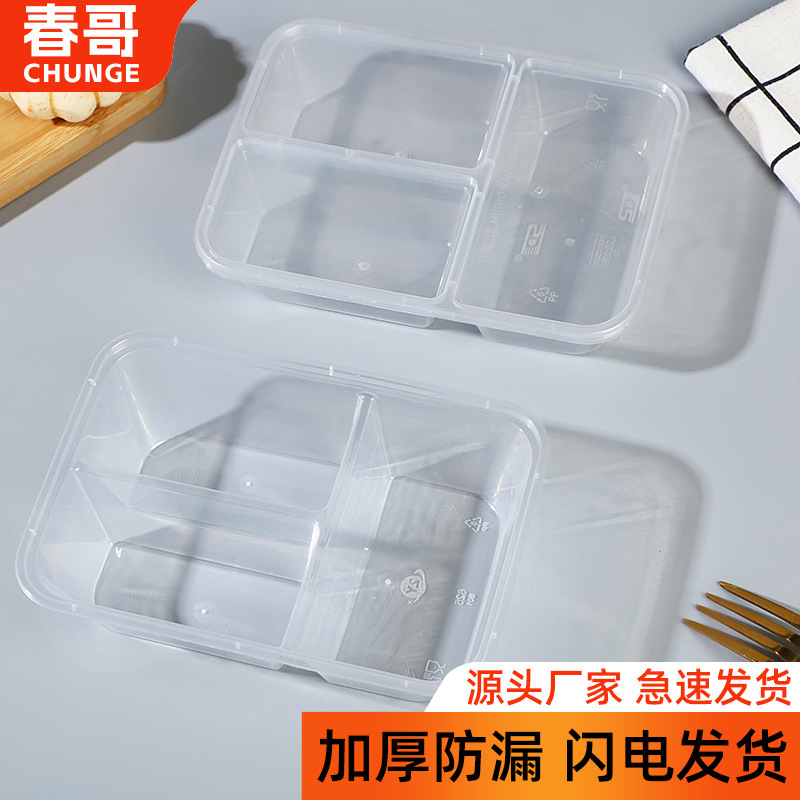 メーカー半透明使い捨てプラスチック四格弁当箱ファストフードホテルの包装箱蓋付き出前弁当箱連体