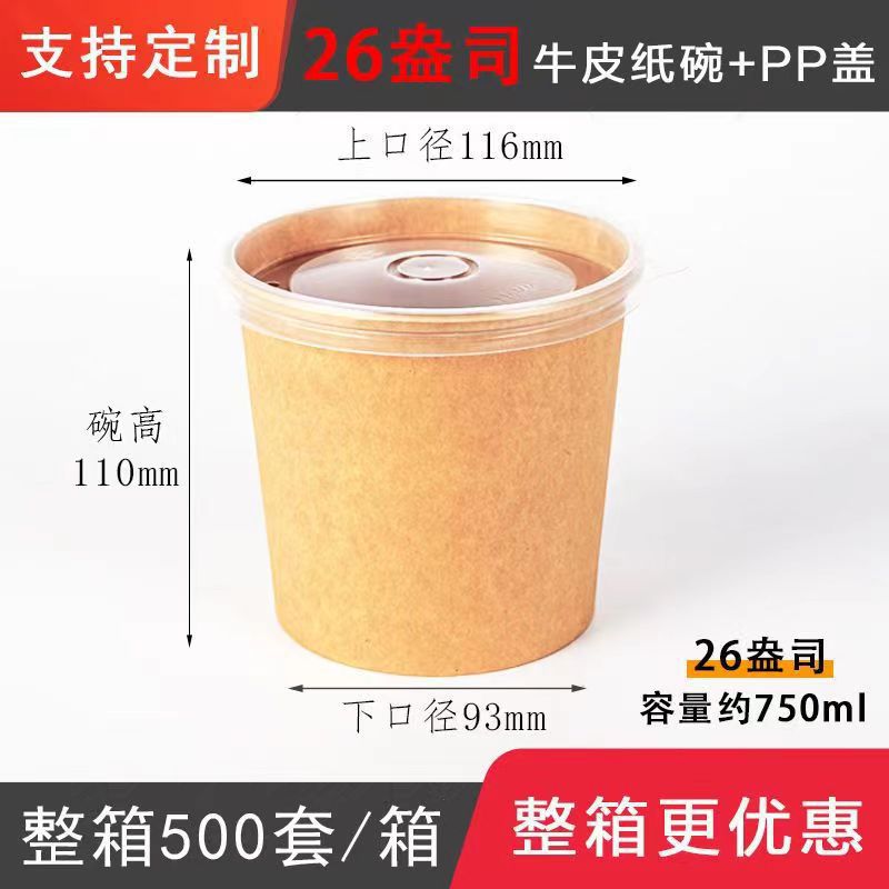 厚い牛革の紙の桶の外に出して碗のスープの碗のサラダの碗の使い捨てのファーストフードの箱の紙の碗の円形の環境保護の卸売りを包装します。
