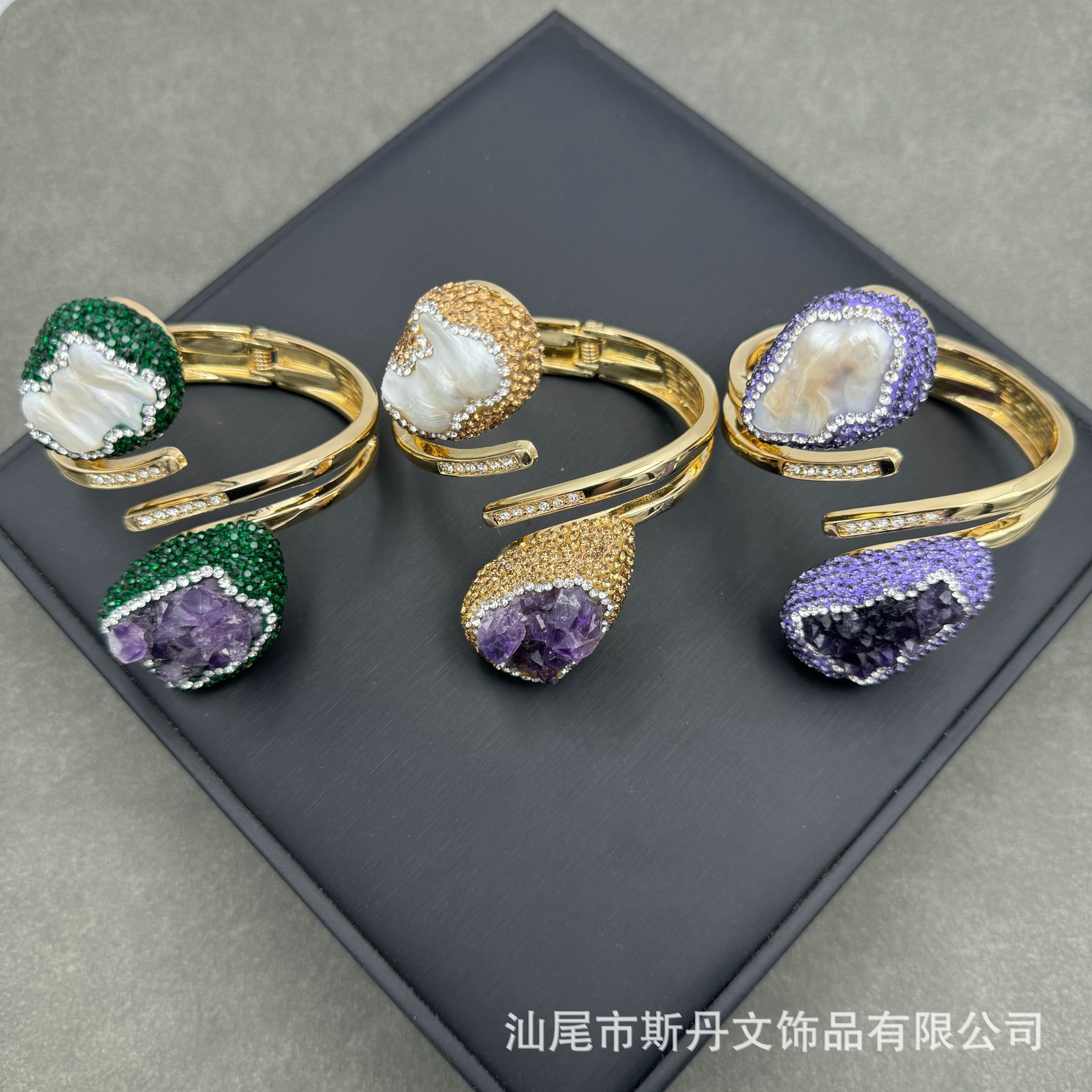 新型天然バロック真珠象眼ブレスレット紫晶原石満ドリル保色ブレスレットメーカー商品ソース卸売り