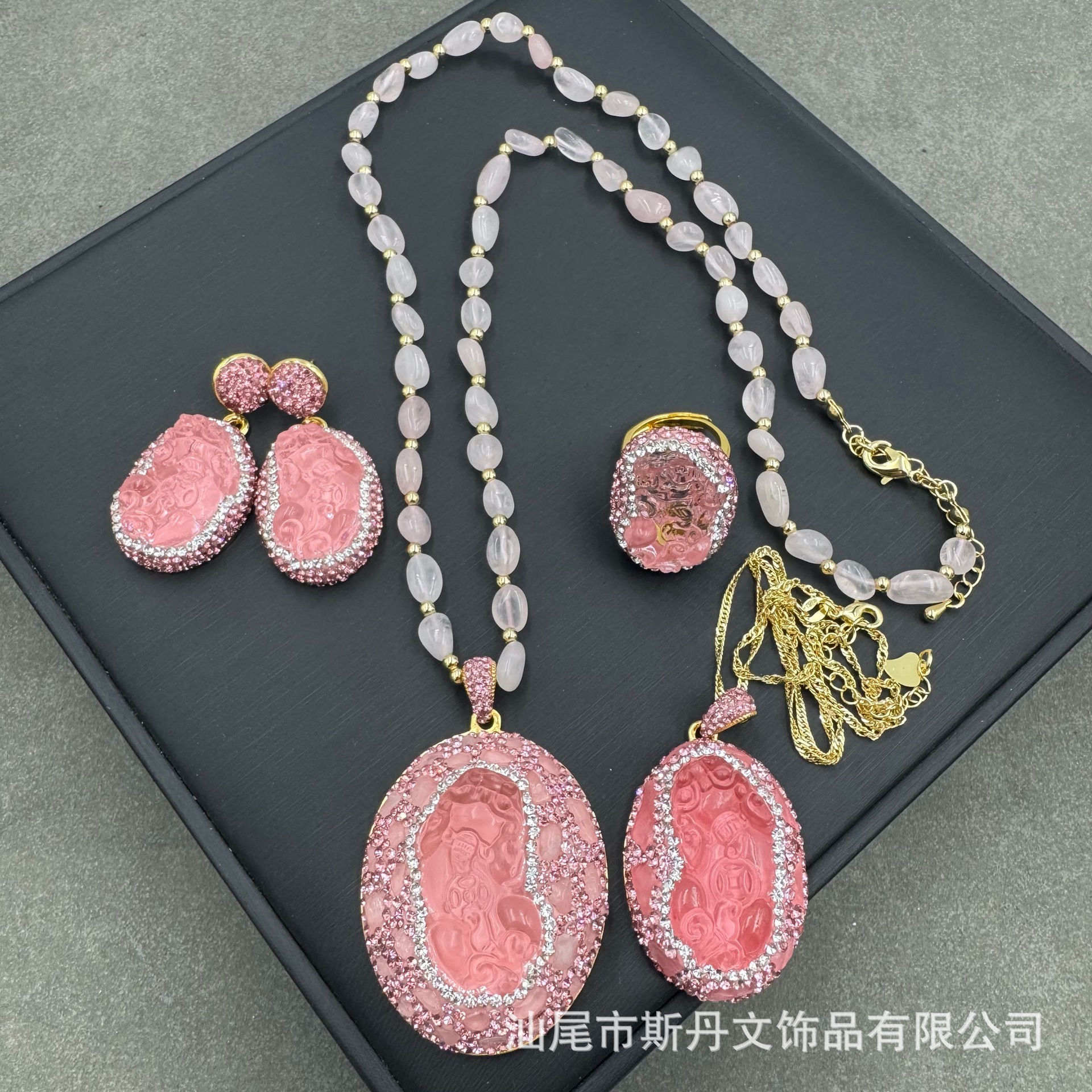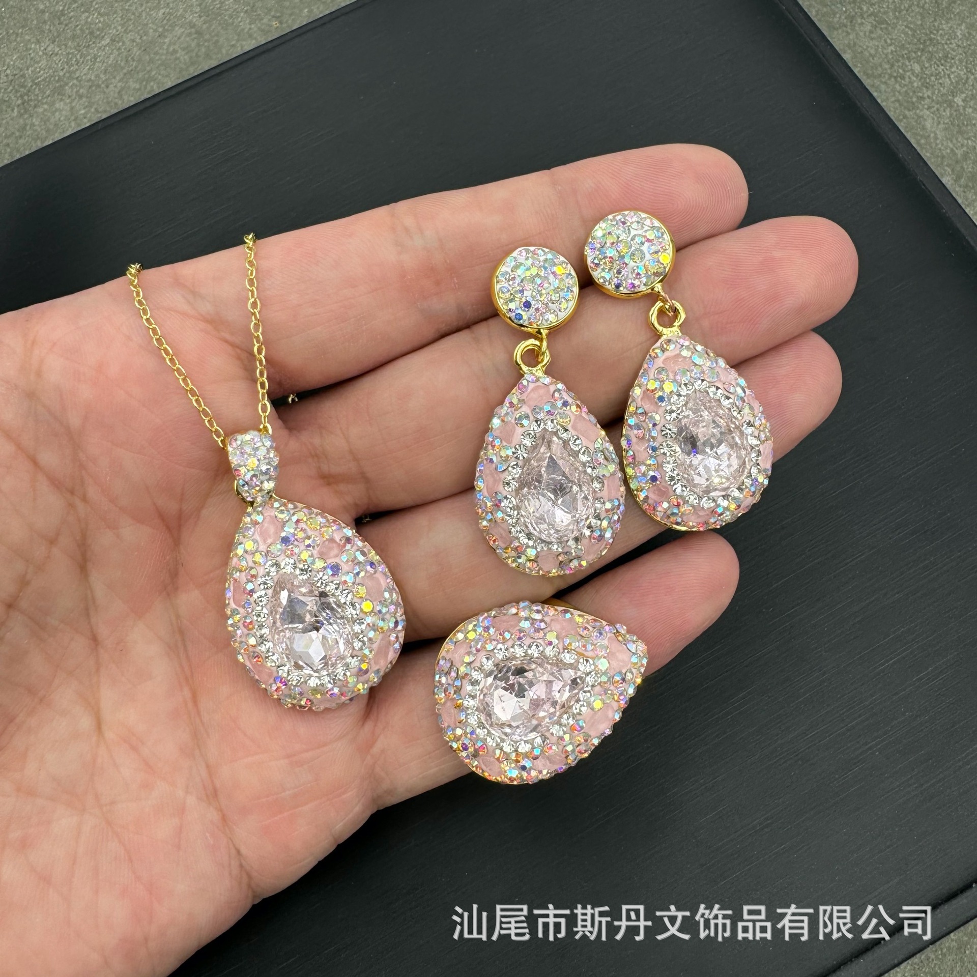 新型k 9粉水晶氷花モザイク三点セット個性中古高級感ドリルアクセサリークロスボーダー商品ソース卸売り