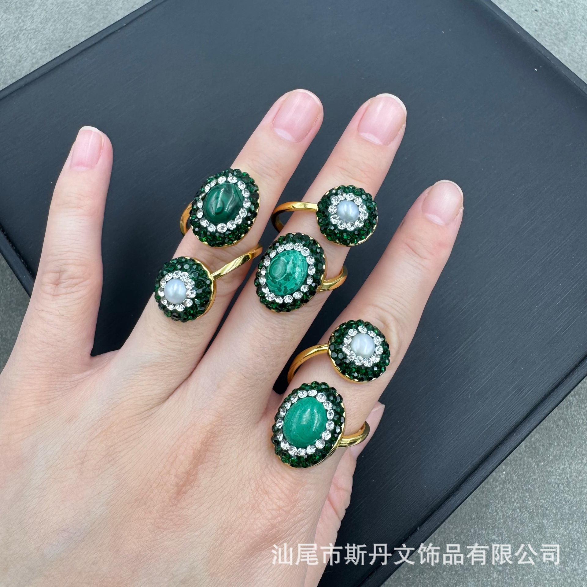 新しいオリジナルは天然ピーコックの指輪をはめ込んでいます。