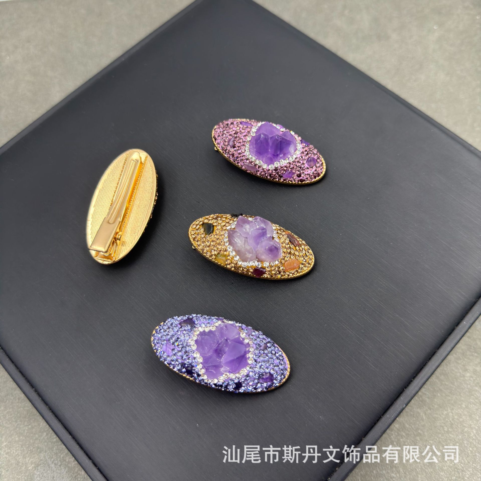ライブブロードキャスト新しいアメジスト原石象嵌ヘアピンパーソナライズされたスタイルフルダイヤモンド前髪クリップラインストーンヘアアクセサリーアヒルのくちばしクリップ卸売