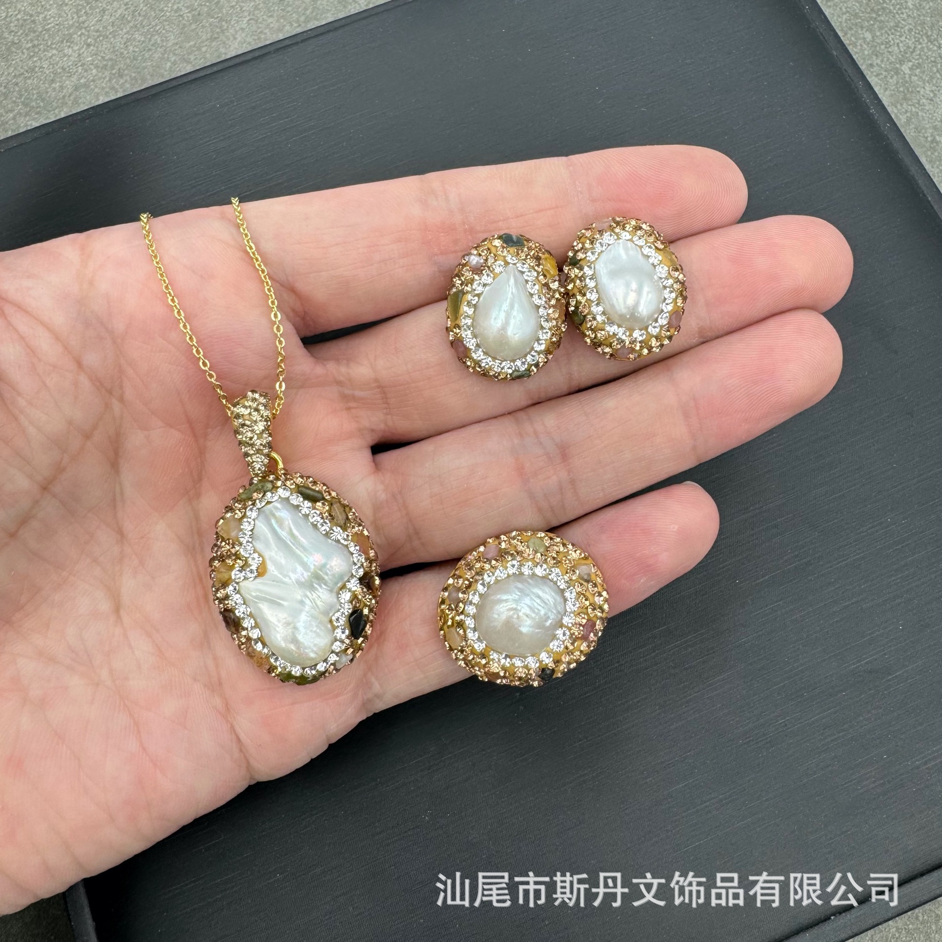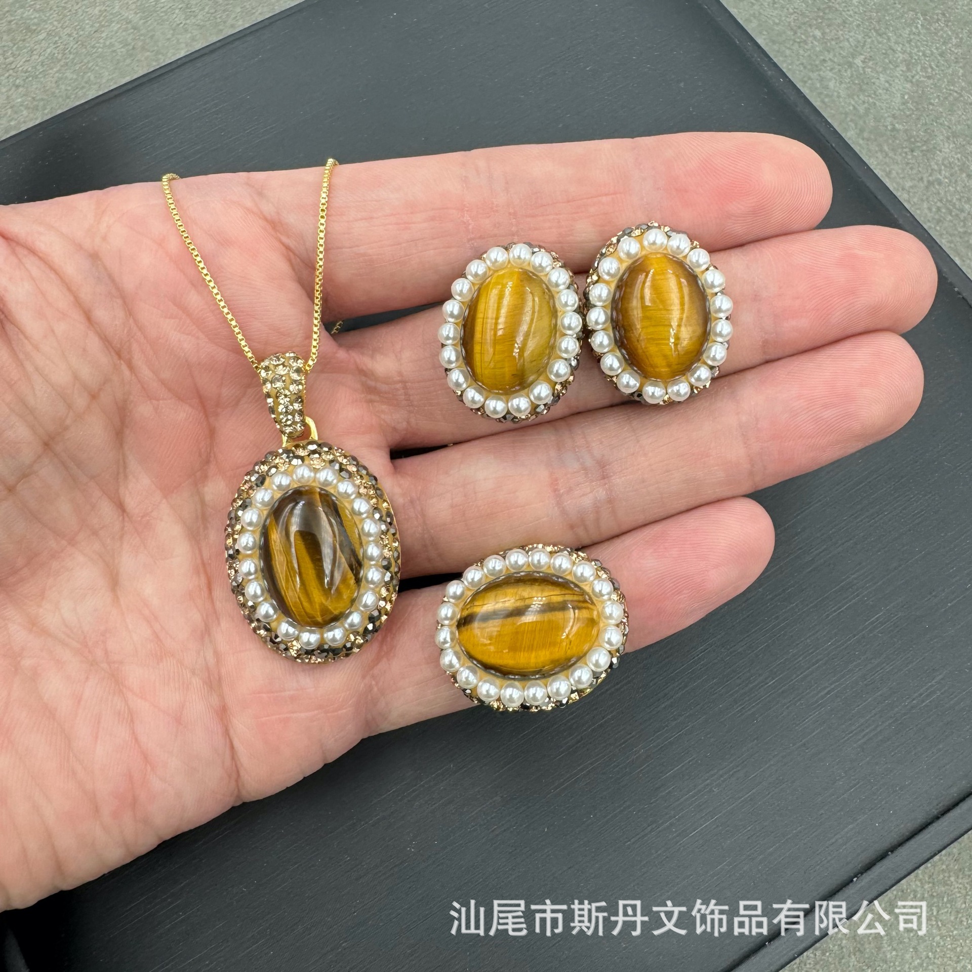 新型天然虎石真珠象眼セット大衆個性軽豪華風生放送越境商品の四点セット卸売り
