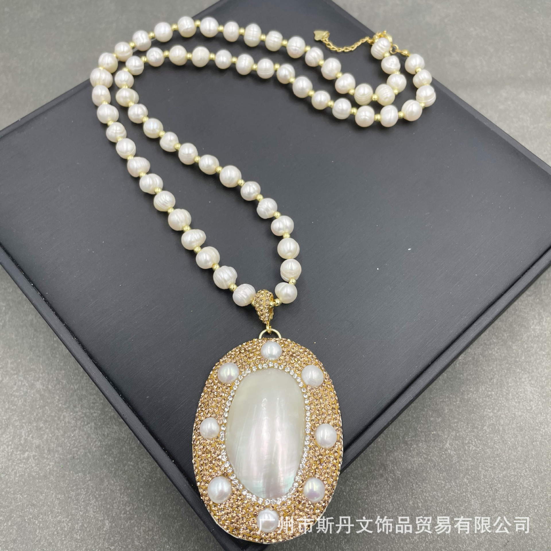 新型天然バロック真珠大馬貝ネックレス欧米フランス式ファッションアクセサリー毛衣チェーン保色メッキ