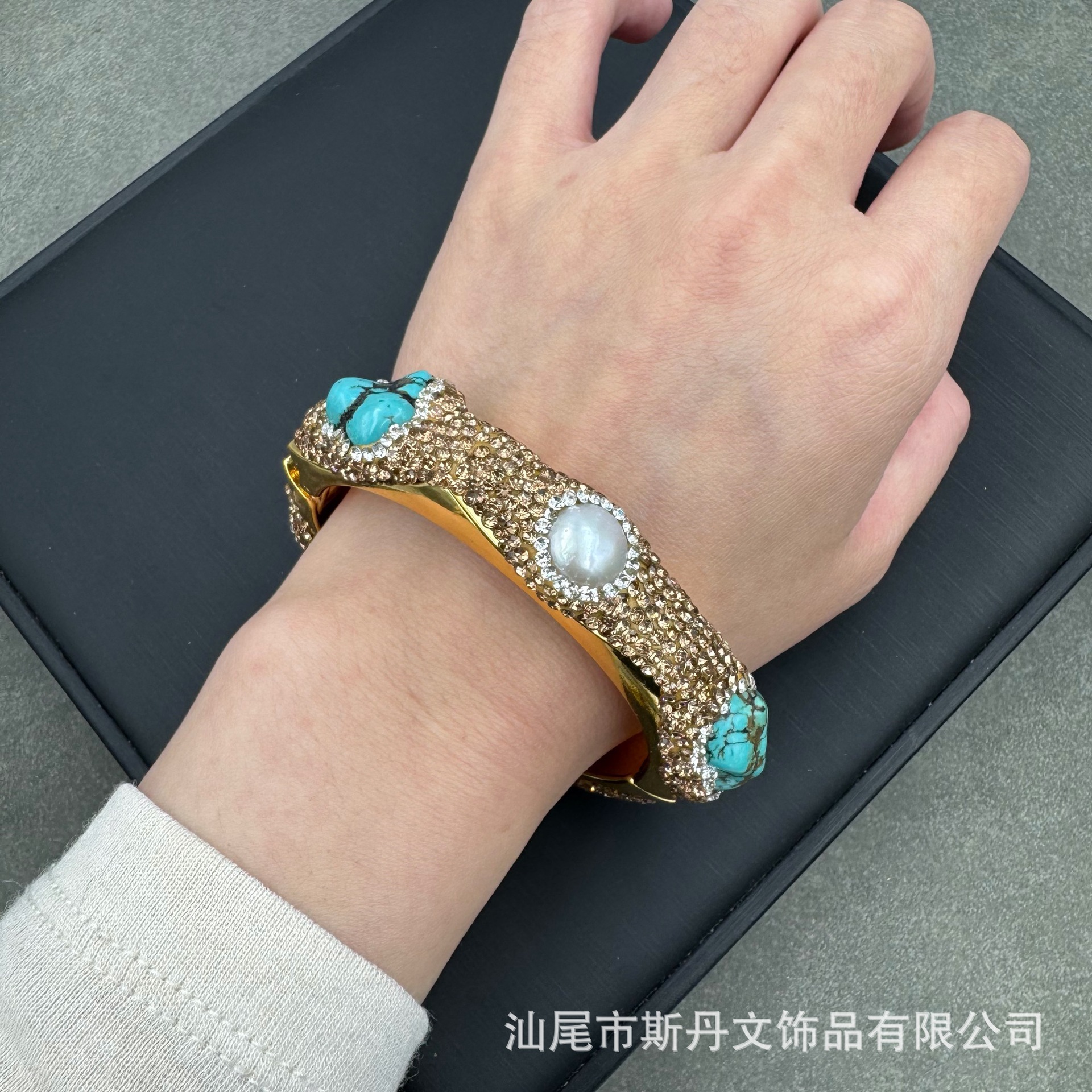 新型天然バロック真珠松石象眼ブレスレット個性ファッションチェコ玉手環境保護色メッキ卸売り