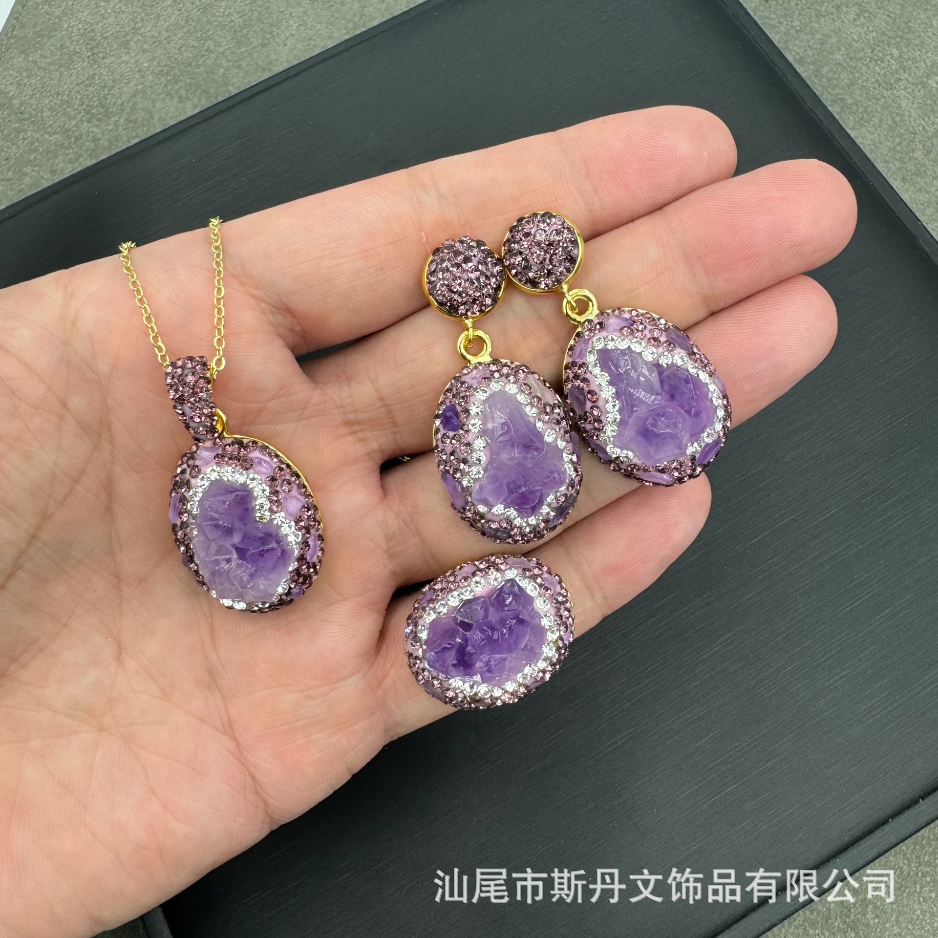 新型天然宝石紫晶花チェコドリル原石セット欧米の個性的で贅沢な風が国境を越えて供給された三点セット