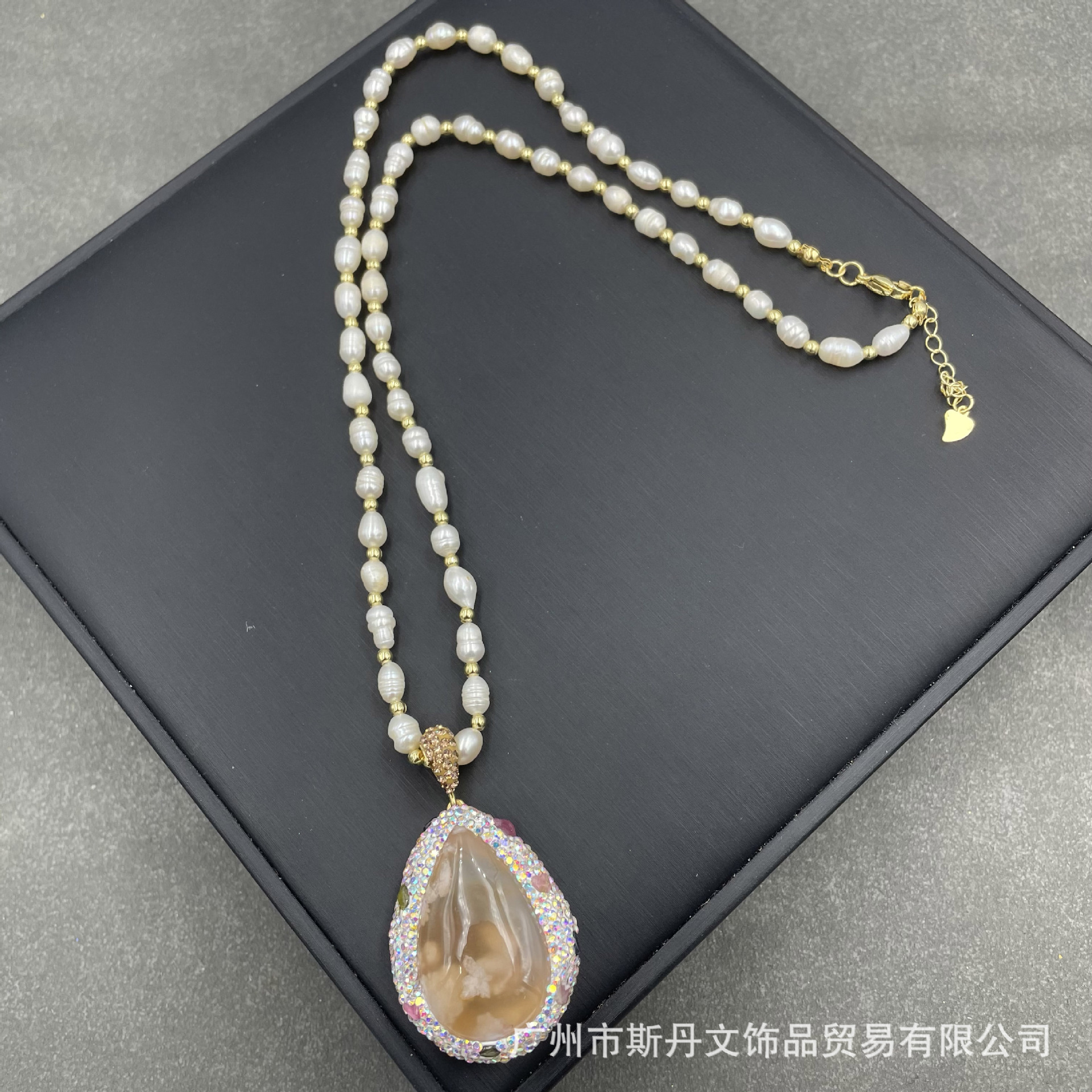 2022新型天然原鉱桜瑪瑙真珠ネックレス個性ファッション宝石チェコドリルセーターチェーン