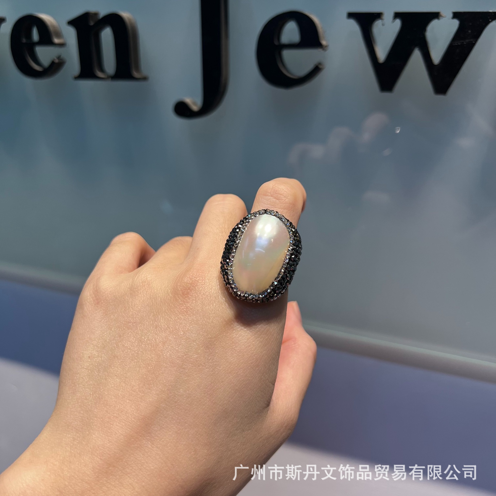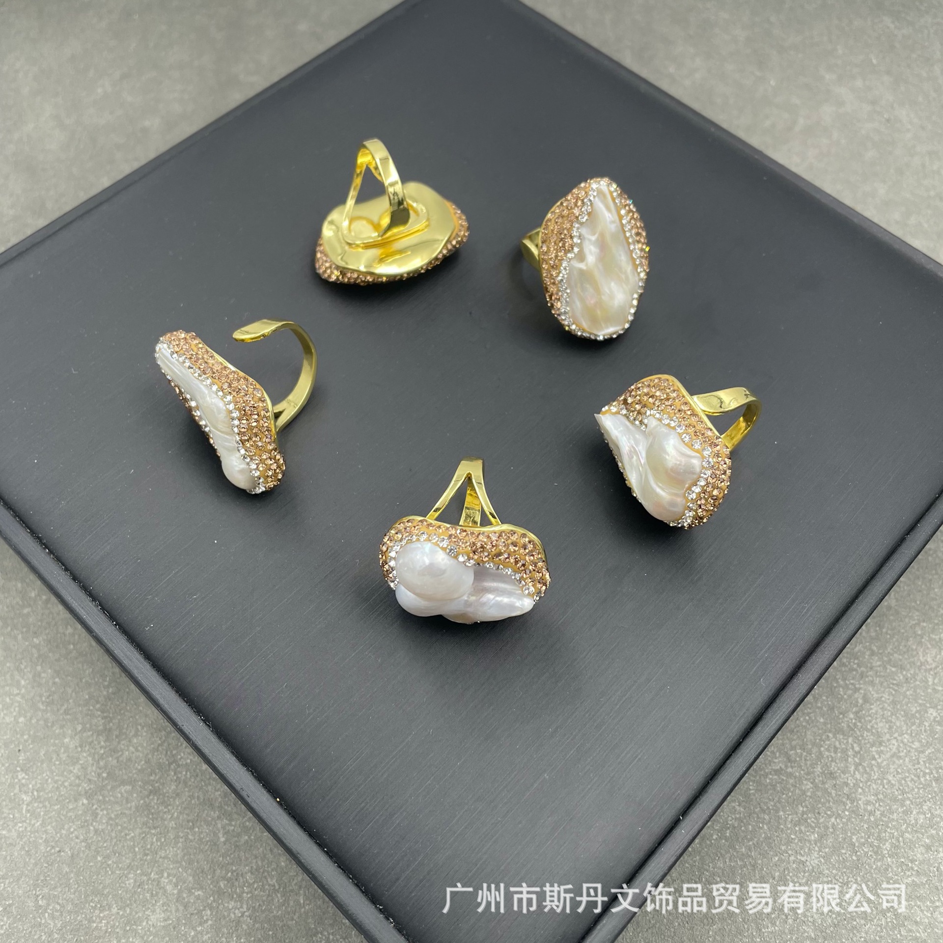 フランスの大衆の新しい逸品のバロックの異形の真珠の指輪はチェコのダイヤモンドのファッションの保色の電気の指輪を象眼します。
