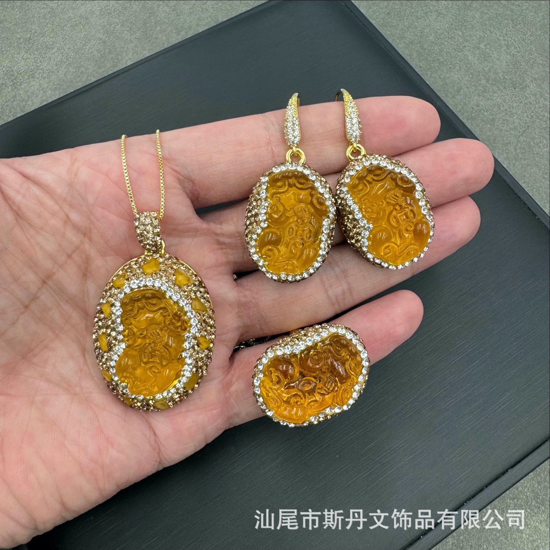 新作の琉璃貔貅象嵌原石セット、中古のニッチジュエリー、翡翠の3点セット、工場直送