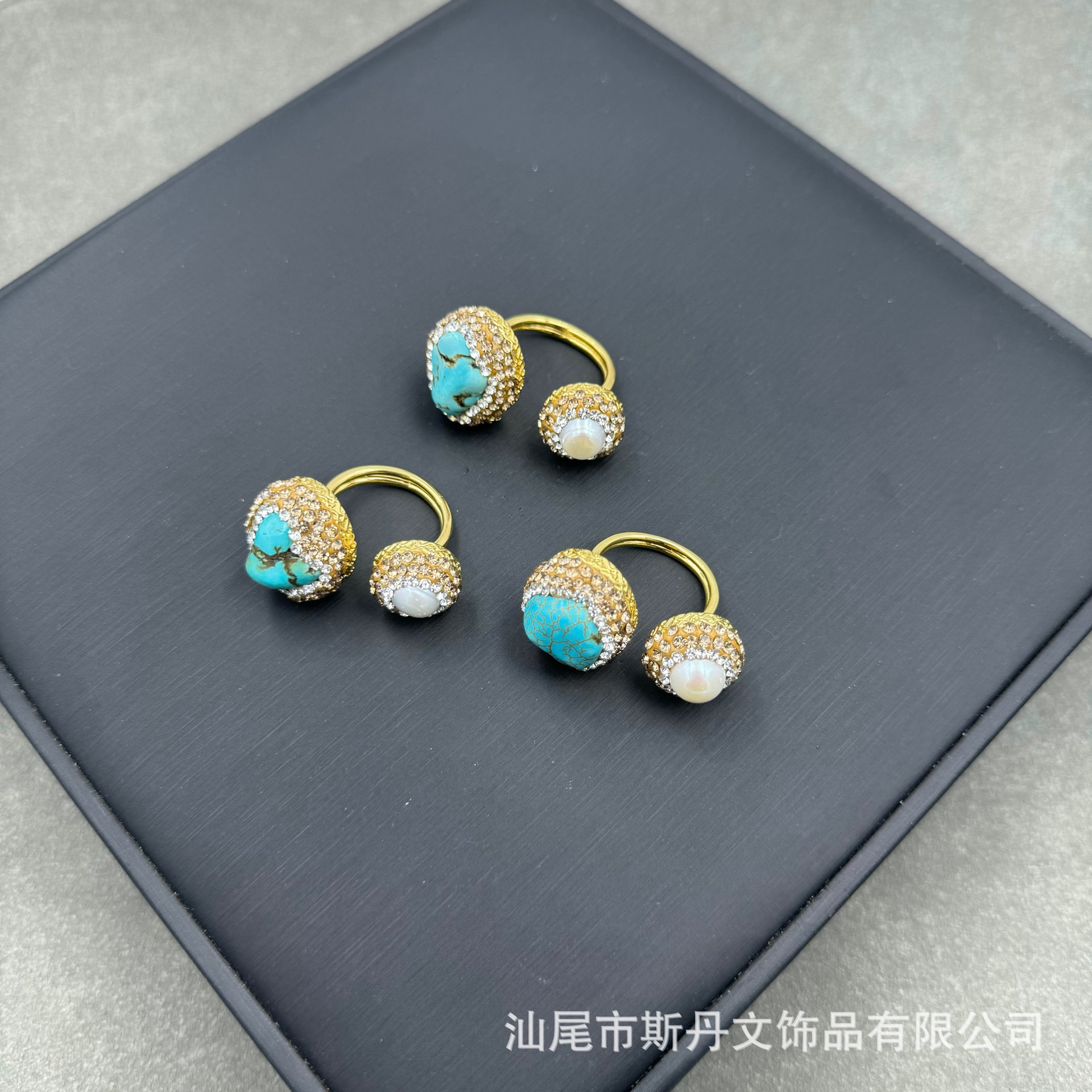 新しいオリジナルの指輪天然真珠は松石の指輪のファッションの個性を象眼します。