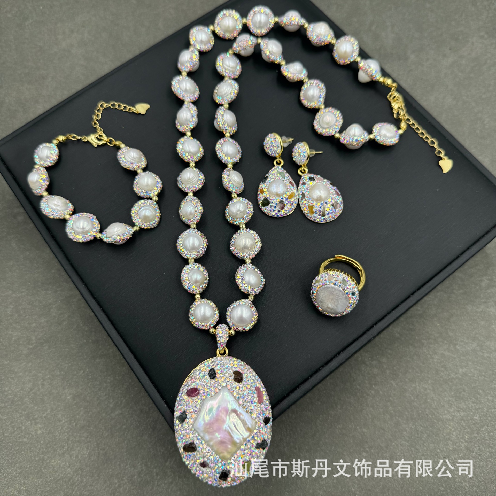 新型バロック淡水真珠セットの美しい高級ジュエリー中古個性モザイク四点セットの卸売り