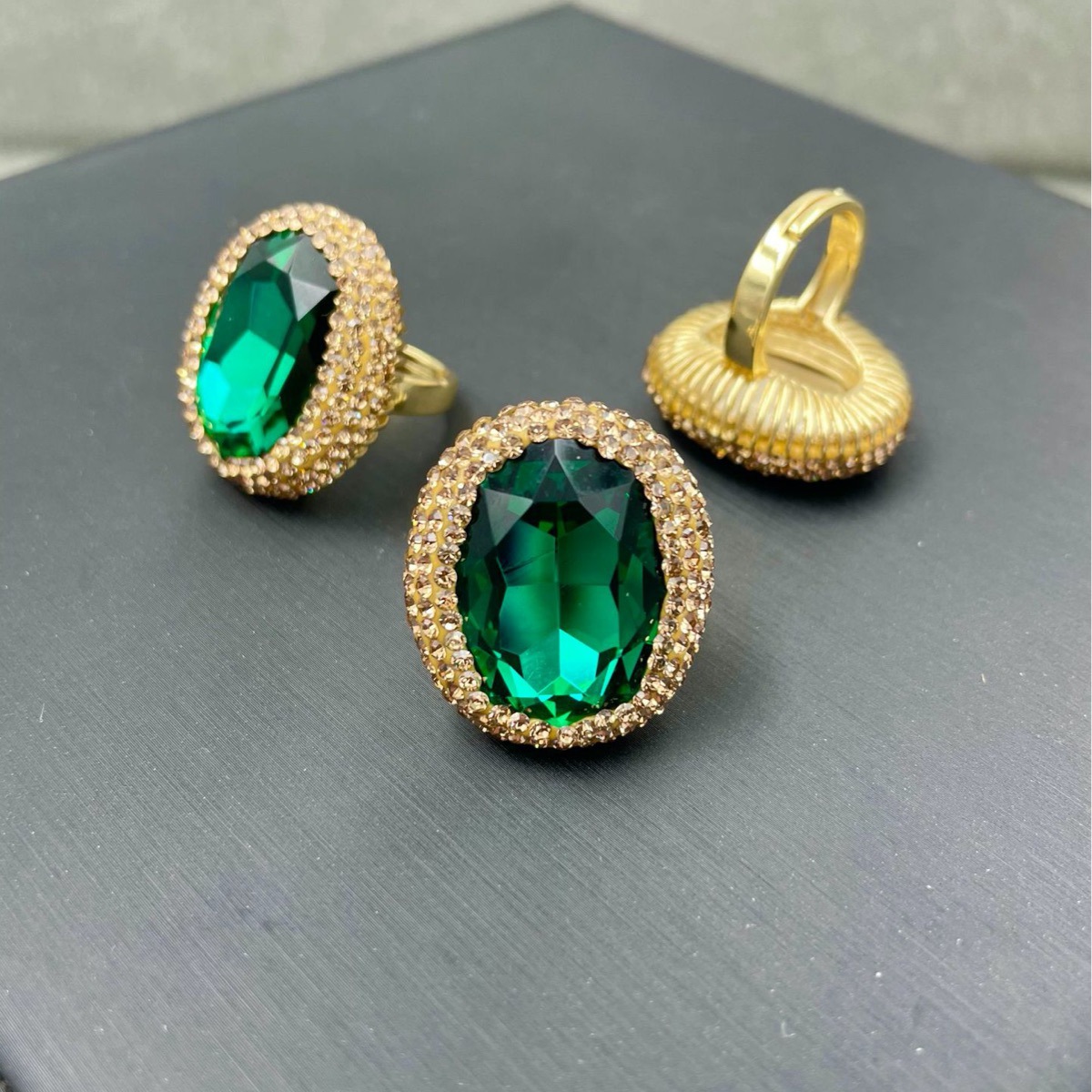 施華洛水晶の指輪の祖母の緑の宝石の色の美しい点のドリルの個性のファッションの口の指輪の高級な軽豪華な風