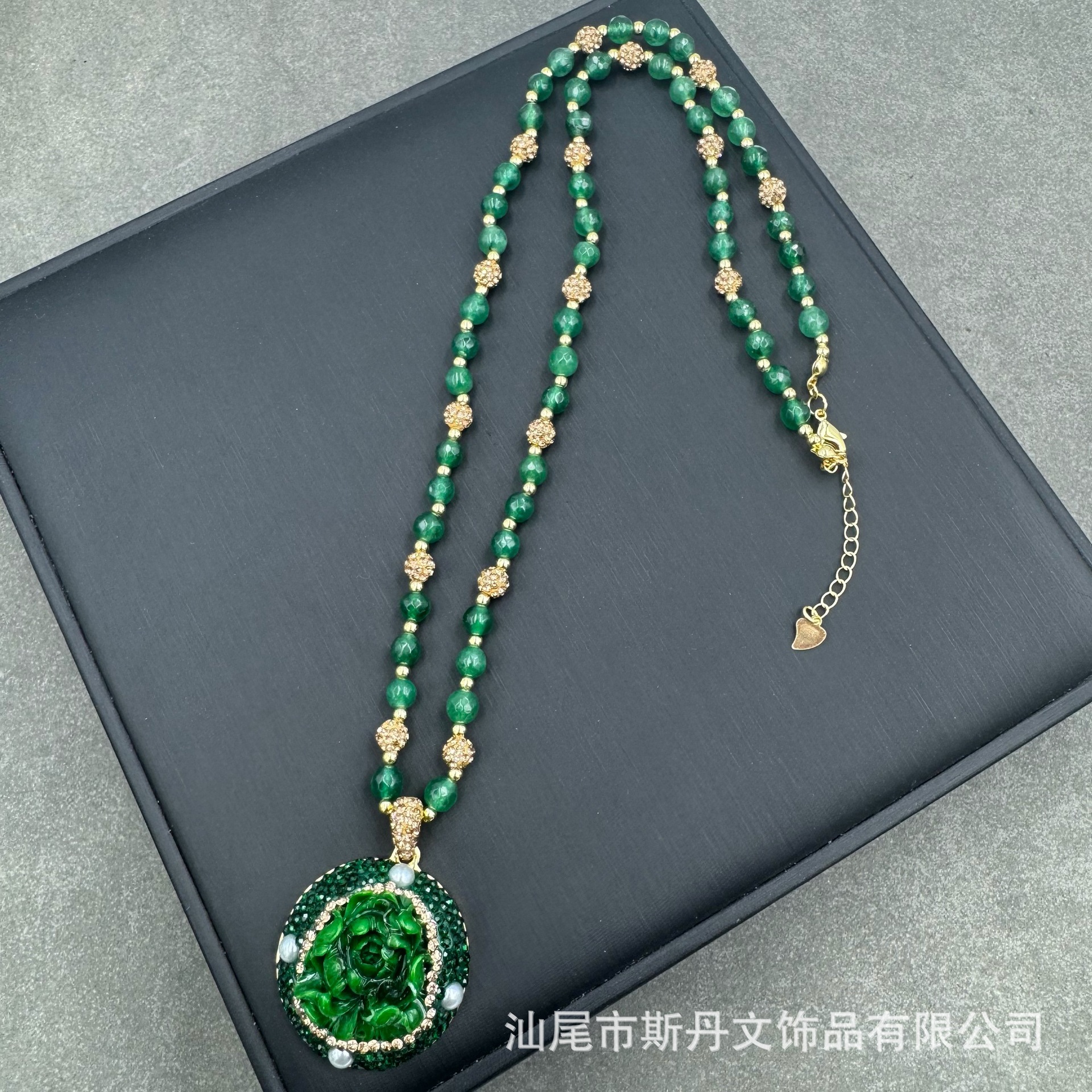 天然玉髄ピシュピスト皮革セーターの中古個性アクセサリーファッションフランスネックレス保色メッキ
