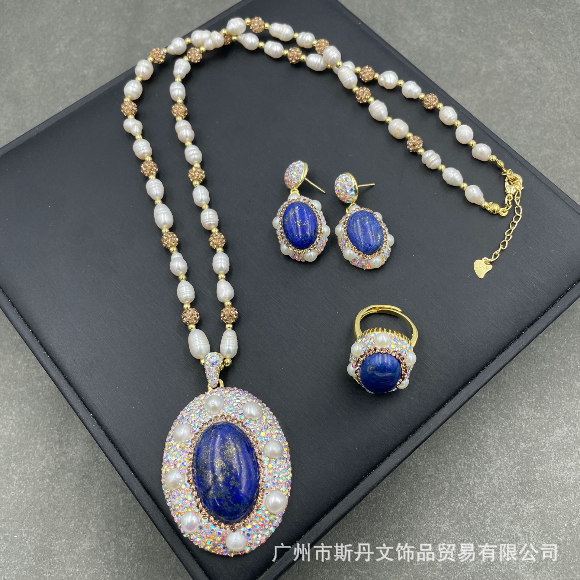天然宝石青金石毛衣チェーン真珠セット高級手作りチェコドリル三点セットメーカー卸売り