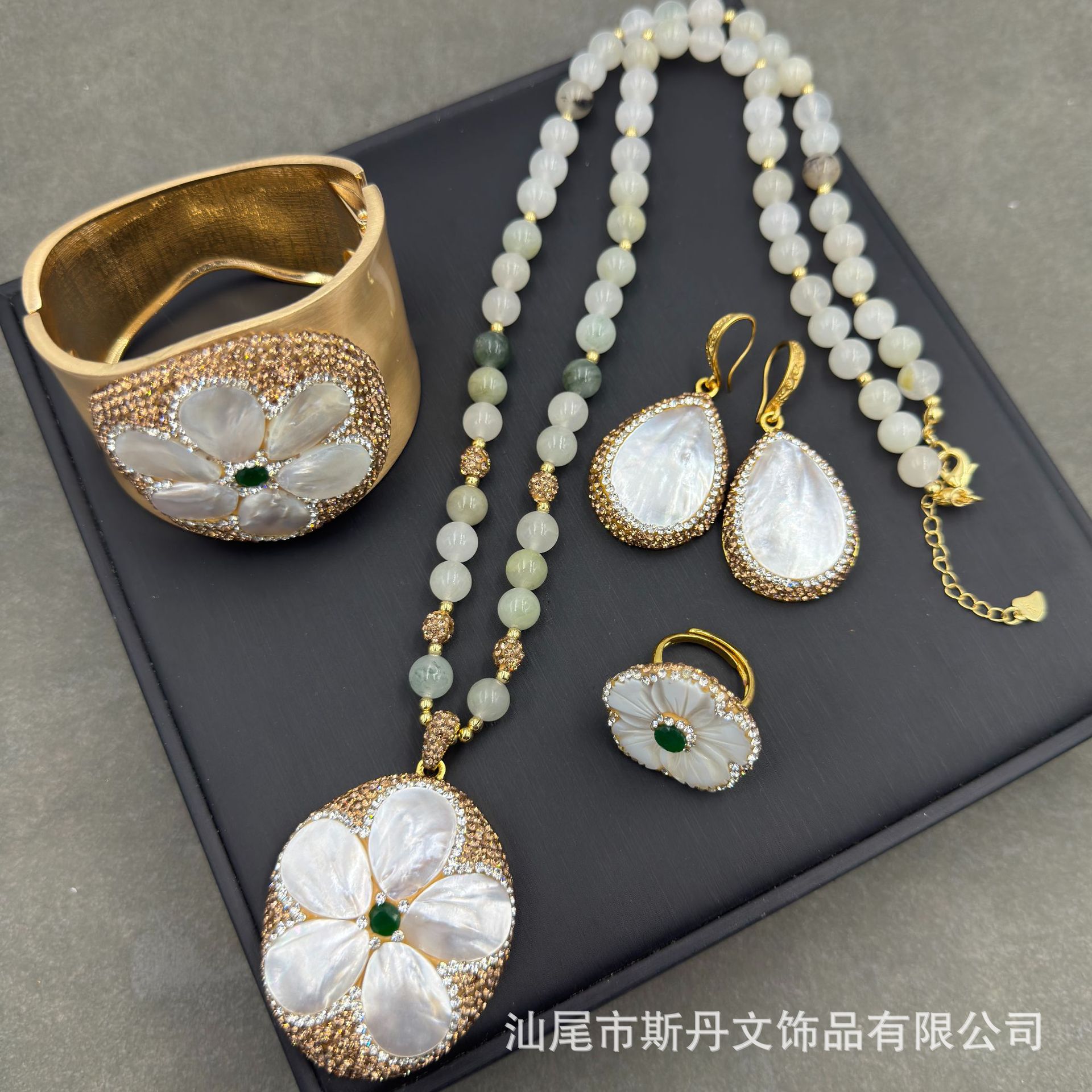 新しい天然真珠貝象嵌スリーピース中古ジュエリーパーソナライズされた手作りセット工場供給卸売