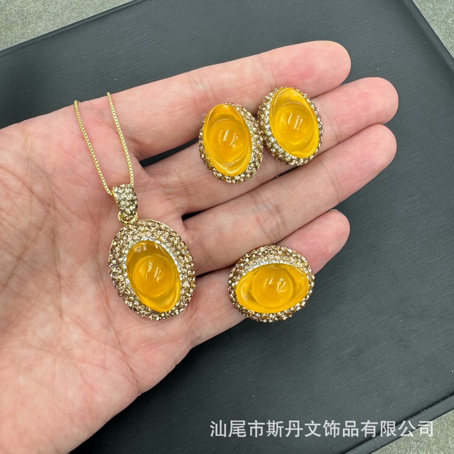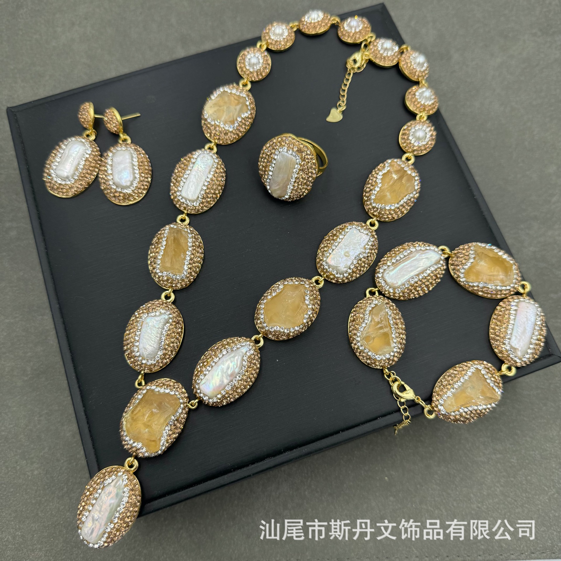 天然原鉱黄水晶モザイク淡水真珠セット小衆個性ネックレス保色四点セットメーカー直販