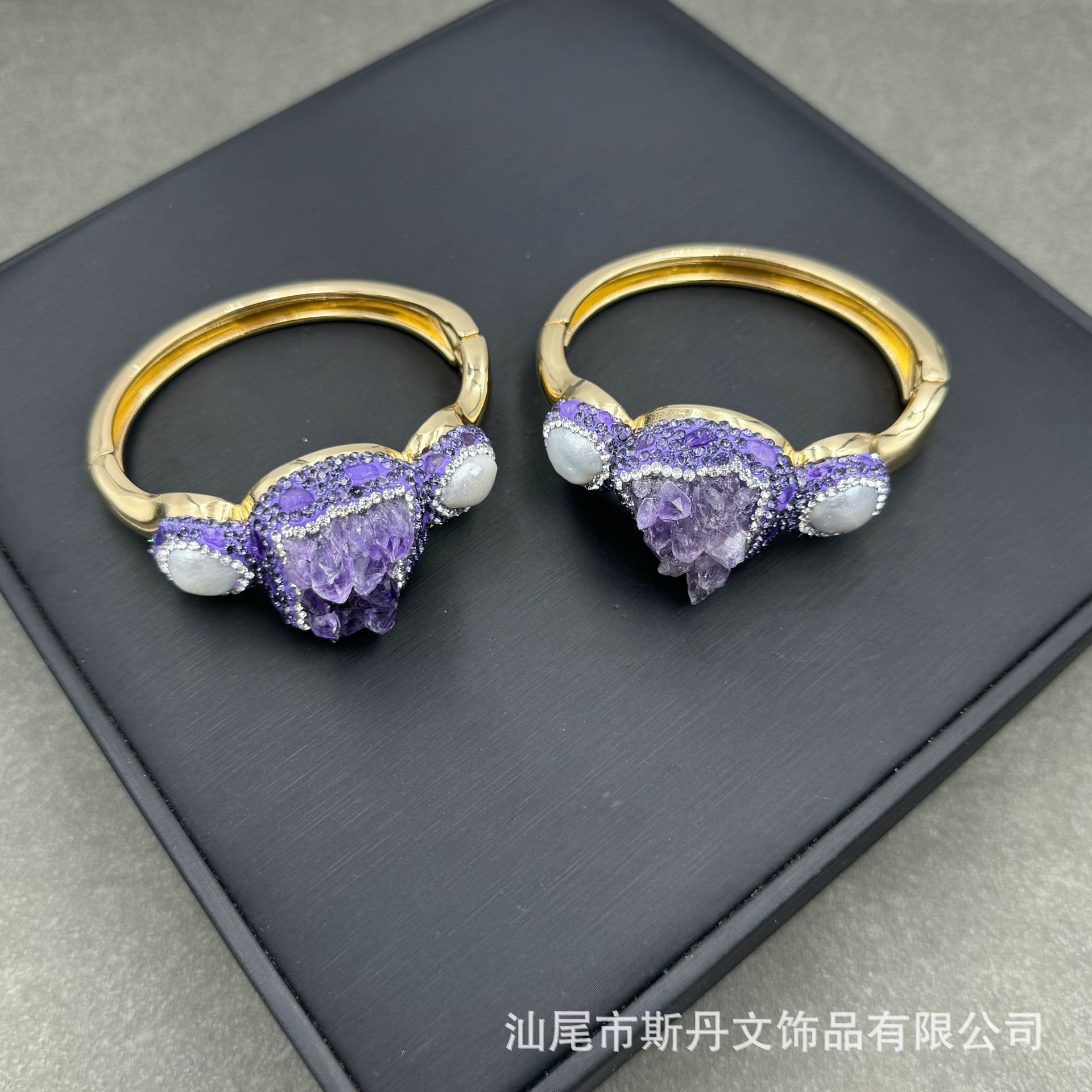 新型天然原鉱紫晶モザイク真珠ブレスレット個性ファッション原石保色ブレスレットメーカーの商品供給源卸売り