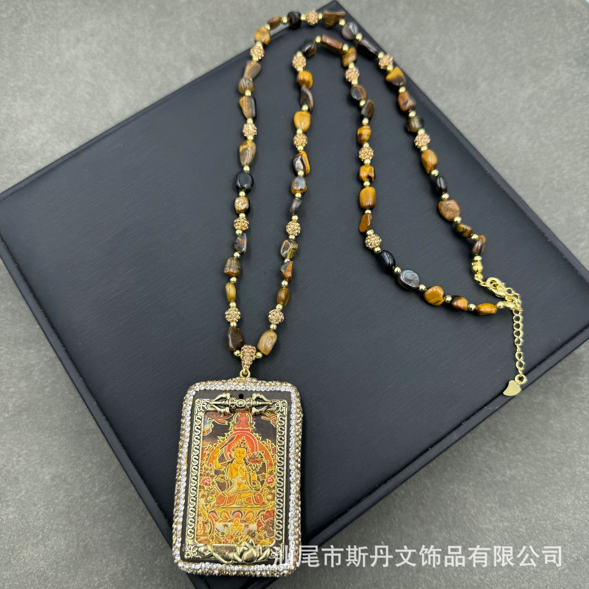 新型チベット唐カードペンダント虎石毛衣チェーン黒檀木守護神仏牌原石ネックレスペンダント卸売り