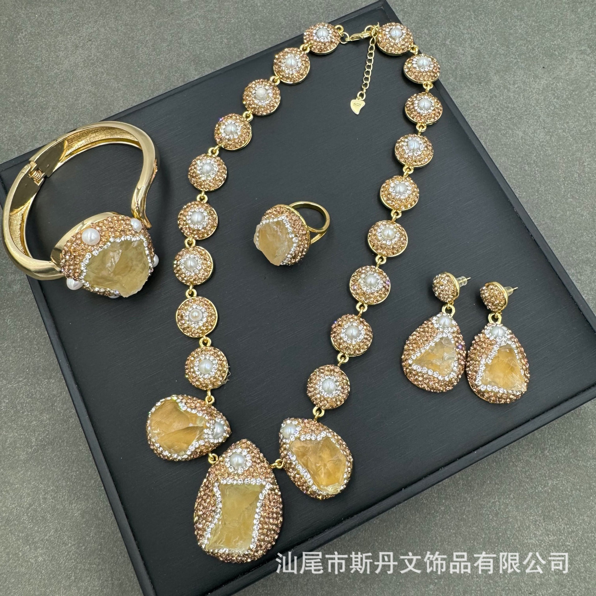 新型天然黄水晶原石バロック真珠四点セットの個性ファッションアクセサリーを生放送して卸売りします。