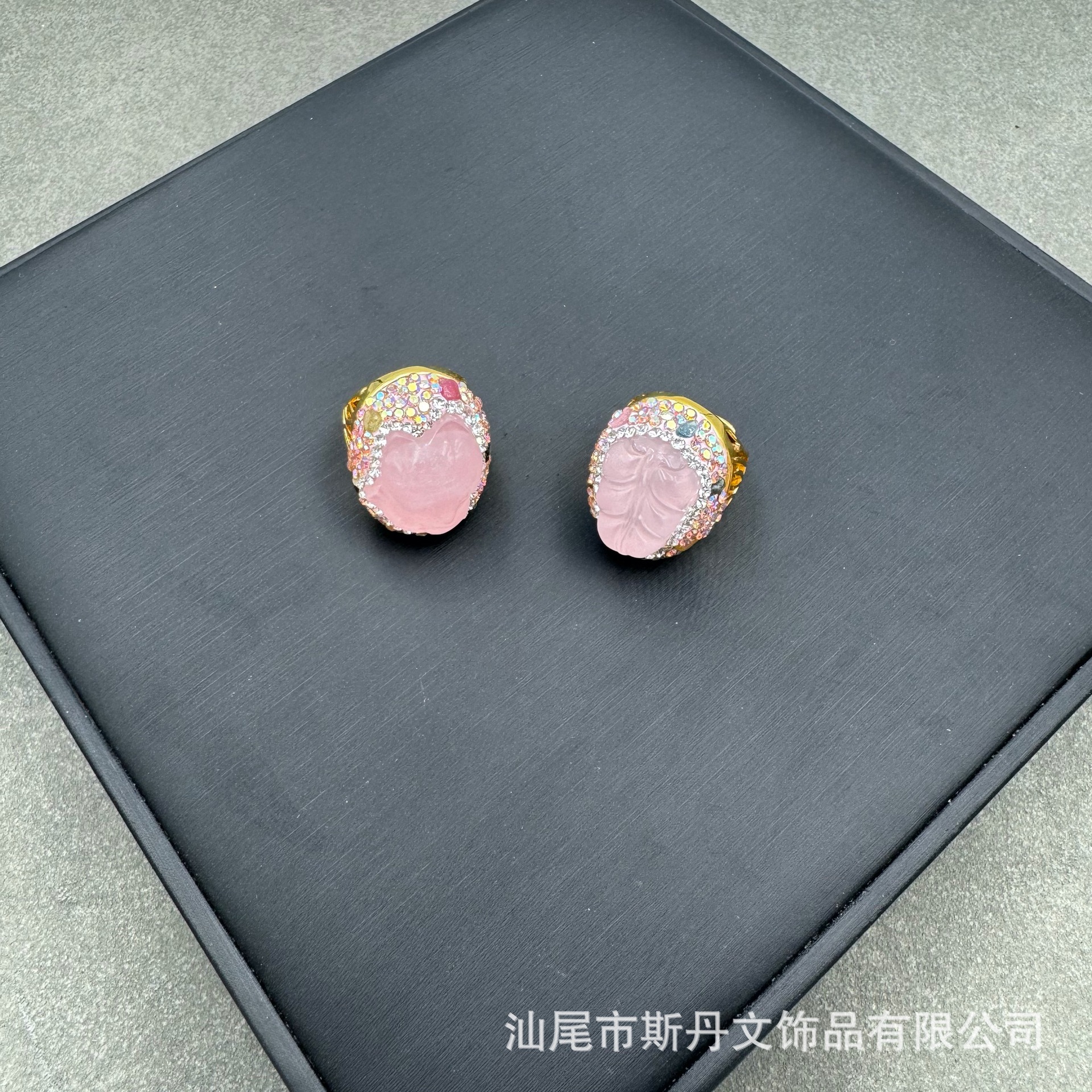 天然原石粉晶彫刻指輪欧米の個性ファッション保色真金メッキ指輪のクロスボーダー商品