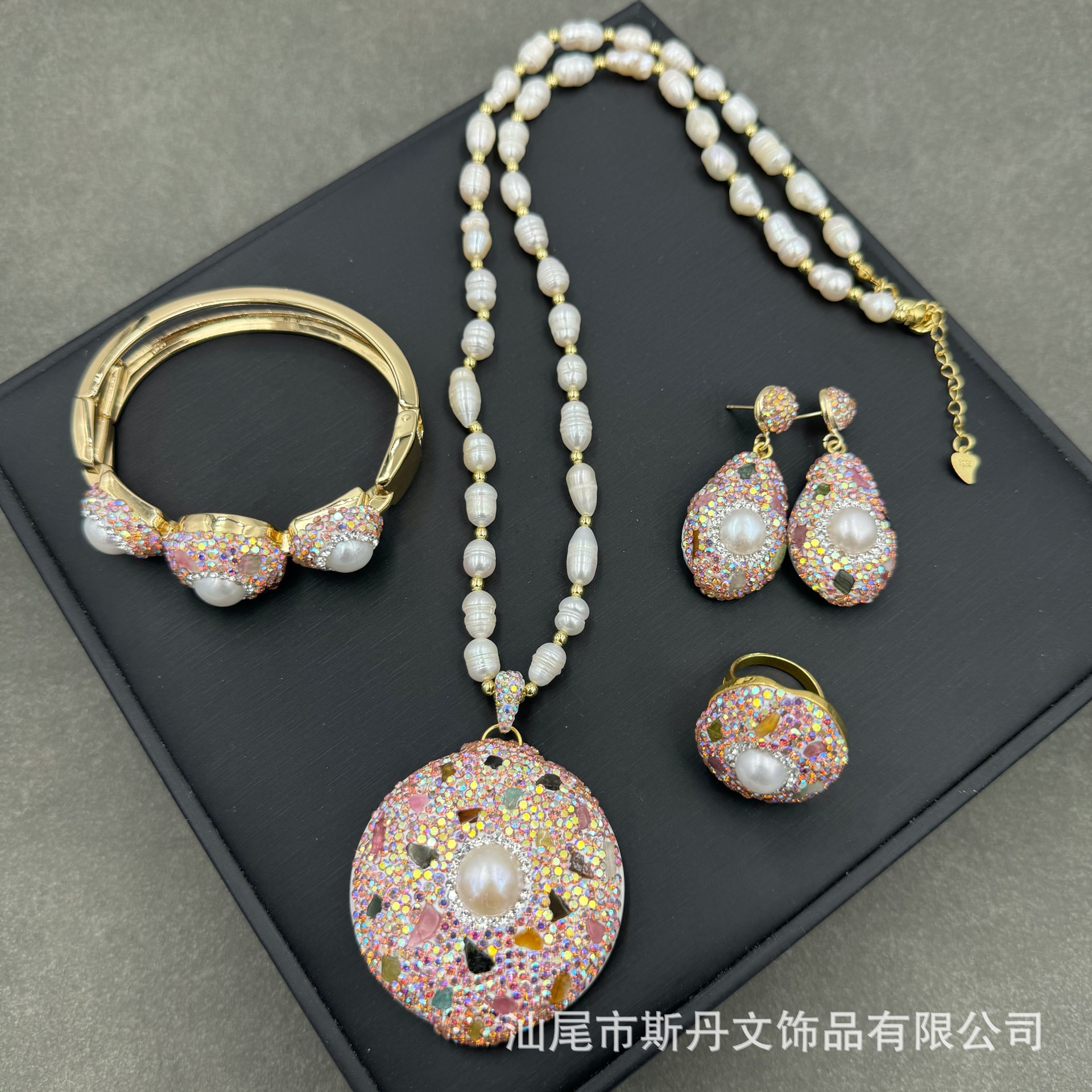 天然原鉱紫水晶モザイク淡水真珠セット大衆個性ネックレス保色四点セットメーカー直販