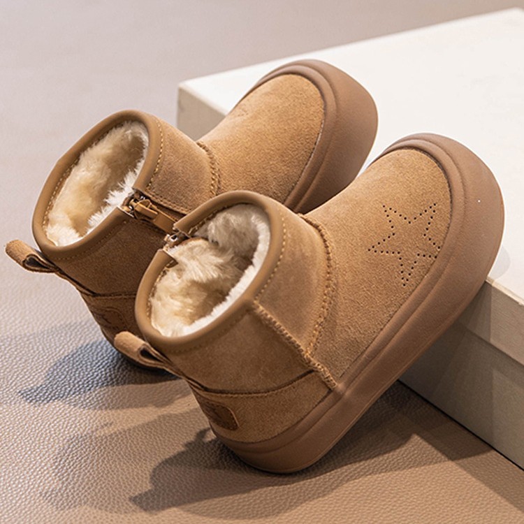 韓国風女の子用スノーブーツ2025冬新作子供用綿靴暖かいミドル丈ブーツ裏起毛女児用毛皮靴