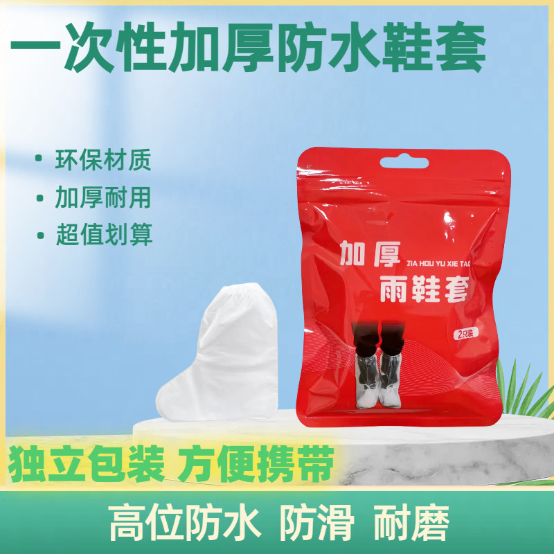 使い捨て防雨靴カバー携帯用厚手の雨の日の長筒足カバーブーツカバー屋外漂流peブーツカバー卸売り