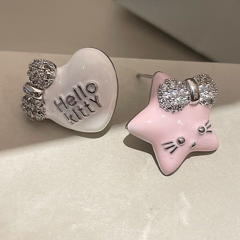 韓国インスタイルカラフルなオイルドリップレター猫イヤリング女性用かわいいファッションラブリボンイヤリング