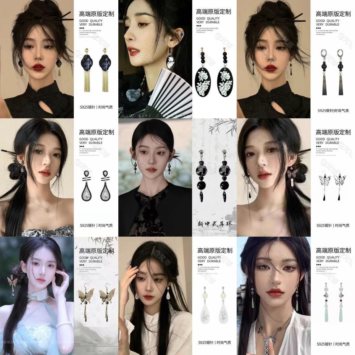 新しい中国風のメタルタッセルイヤリングレトロチャイナドレスアクセサリー女性のニッチデザインイヤリングハイエンドブラックイヤリング