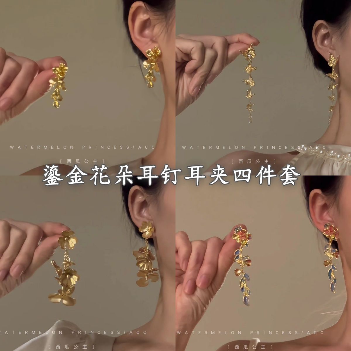 「金の砕葉」金色の花びらイヤリング2025新型の爆金高級感花流蘇復古耳飾り女