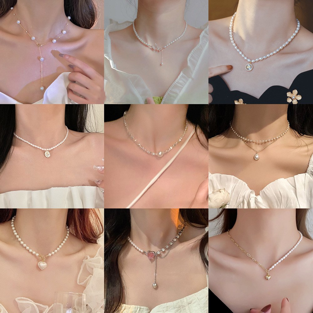 韓国の新型の小さい衆の真珠のネックレスの女性の百合は愛の鎖の骨のチェーンの軽い贅沢な気質の数珠のネックレスの卸売りをつなぎ合わせます。