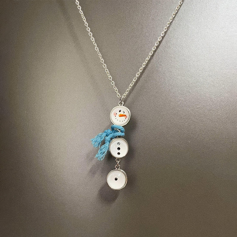 秋冬デザインの白い雪だるまボタンネックレス、女子学生向け、個性的なレトロ合金クリスマスセーターチェーン
