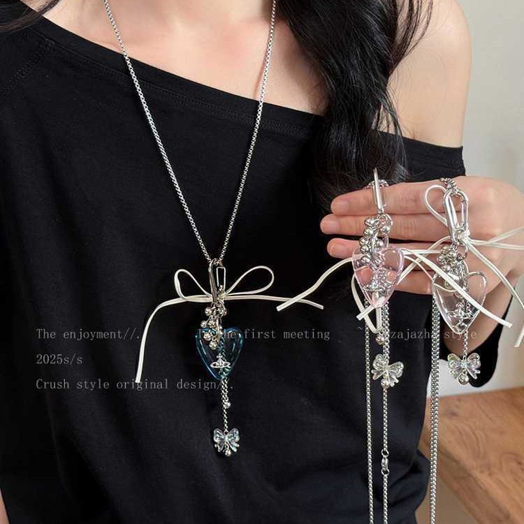 y2k ピンク土星ラブネックレス女性のための 2025 新しいニッチデザインロング鎖骨チェーン甘くてクールな個性アクセサリー
