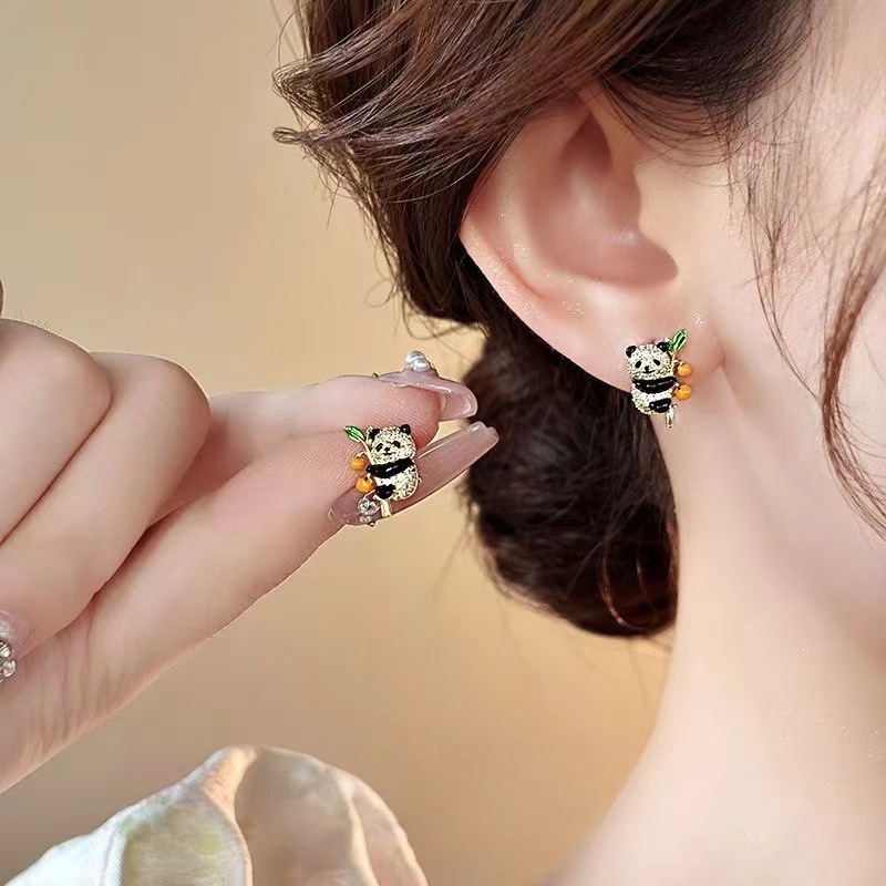 2024新型の爆発金はジルコンの小さいパンダの柿の如意のピアスの女性の大衆の独特なイヤリングの精巧な耳飾りを入れます。