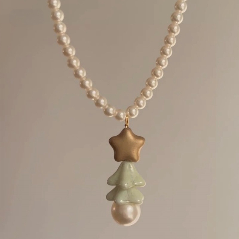 緑のクリスマスツリーの星の真珠のネックレスは逃げます。