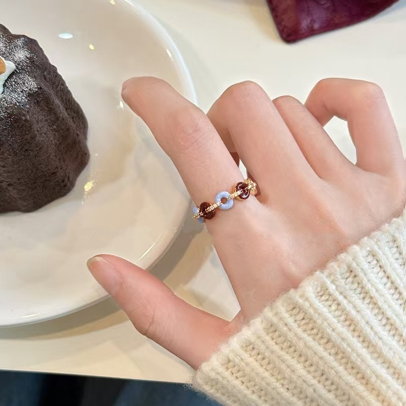 レトロな釉薬のリングの指輪の女性のフランス式の軽い豪華な高級感の食指の指輪の小さい大衆の設計の開口部はリングを調節することができます。