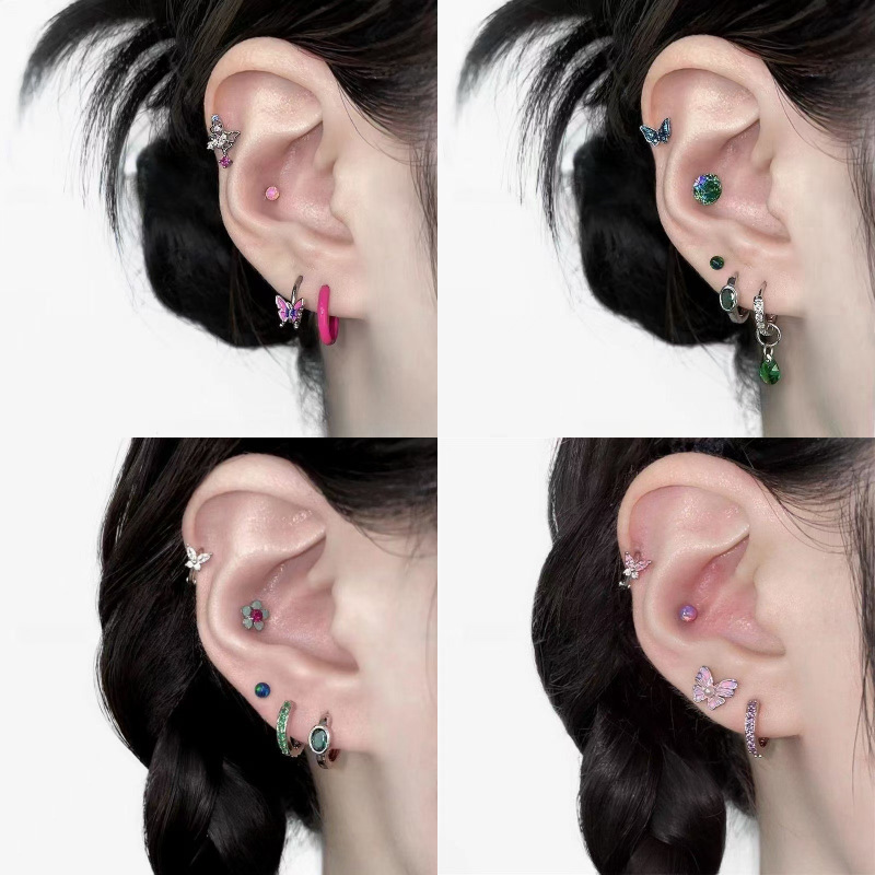 緑のジルコンの水滴のイヤリングの5つのセットの耳のボタンの水滴の蝶の設計の新型のギャルの小さい衆はピアスの女性を設計します。
