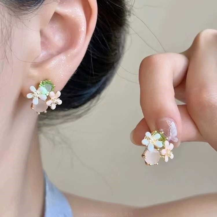 春のレトロな花のジルコンイヤリング女性のニッチな甘い気質イヤリング 2025 新しいハイエンドイヤリング