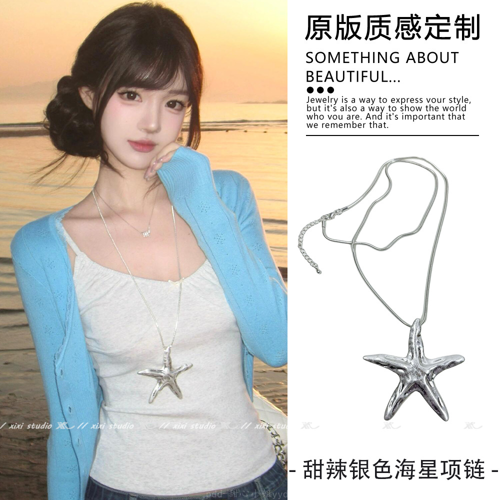 甘辛い銀色の海星のペンダントの長いネックレスのリゾート風は誇張の首飾りの個性を身につけて新商品の装飾の女性を飾ります。