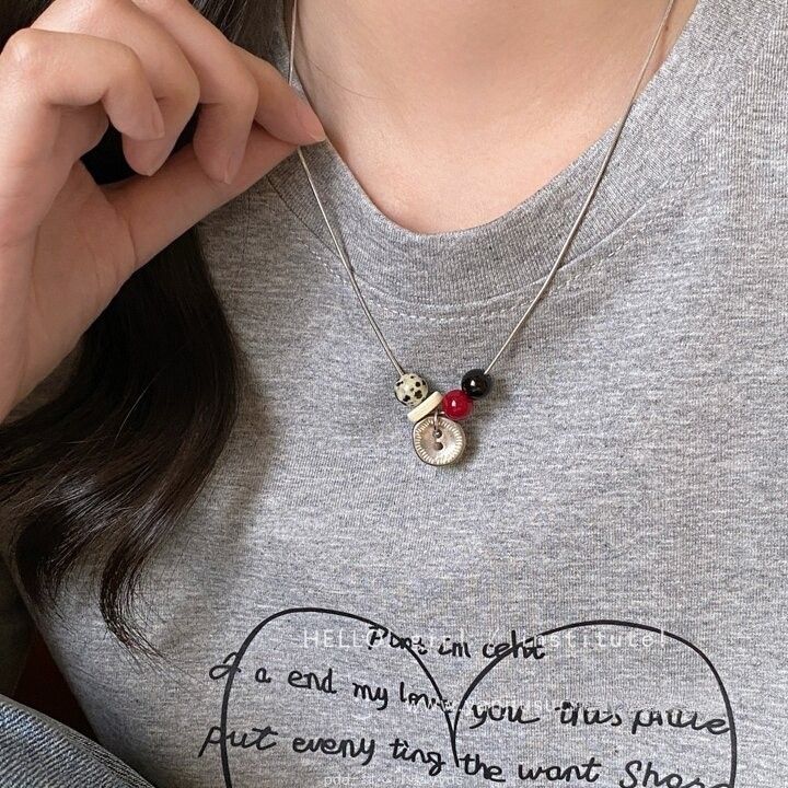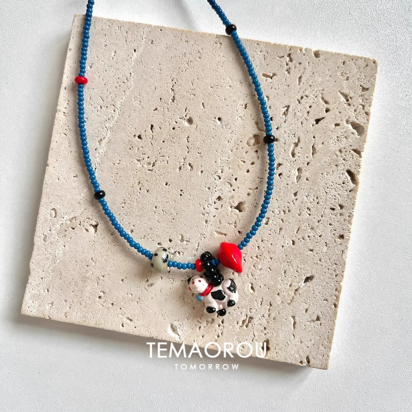 ドーパミンかわいい幸せな牛ペンダントニッチデザインイン赤と青のビーズサマーネックレス鎖骨チェーンアクセサリー