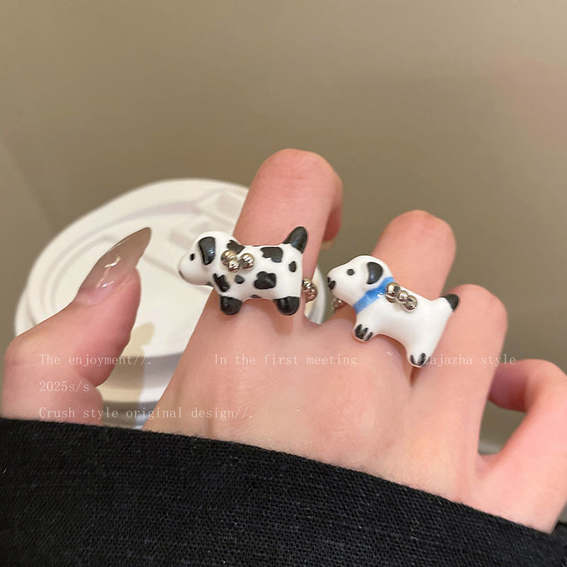 子供の趣味の斑点の犬の指輪の女性の金のかわいい大衆の設計の高級感の食指は学生の党が弾力的に指輪を重ねることを指します。