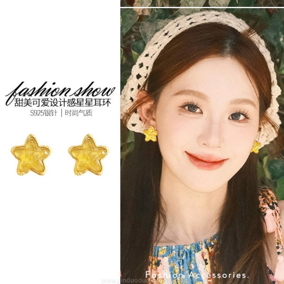 黄色の星の耳のクリップの女性の耳の穴のイヤリングの新型の芸術の生の軽い豪華な高級感の小さい大衆の甘くてかわいい耳飾り