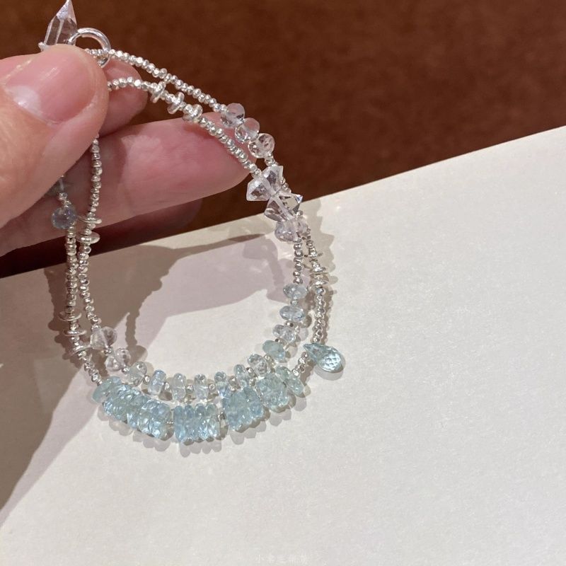 夏限定氷透二重海藍宝手串女小衆デザイン清透感白水晶ブレスレット甘いins