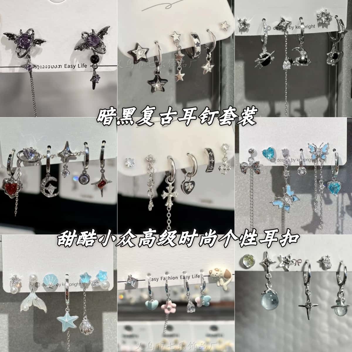 ダークシルバー針レトロ悪魔イヤリング甘くてクールなハイエンドファッションパーソナライズされた翼ニッチイヤリング新しいイヤークリップ