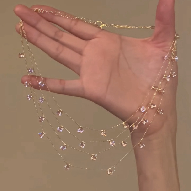 「ミス落ち仙粉」多層重ね着ネックレス女性金2024新型爆金高級感粉ドリル鎖骨鎖首鎖