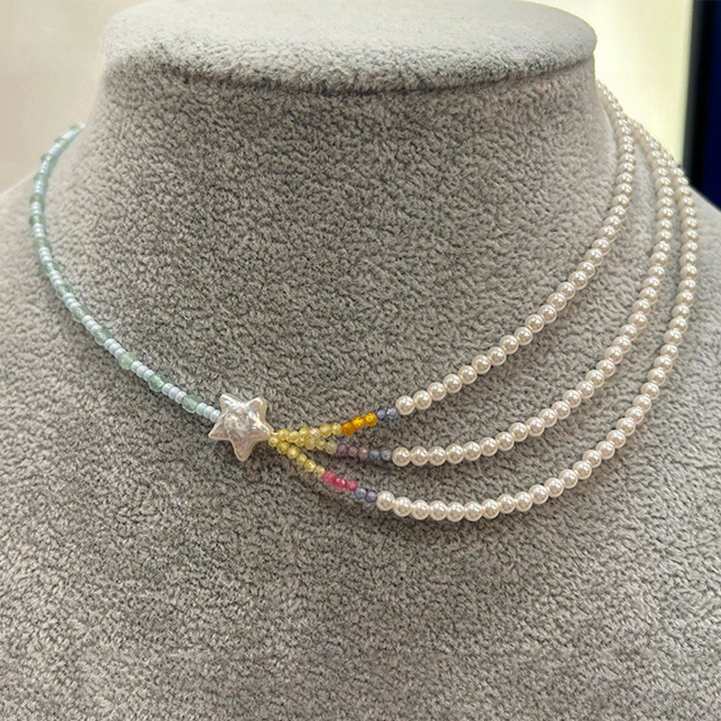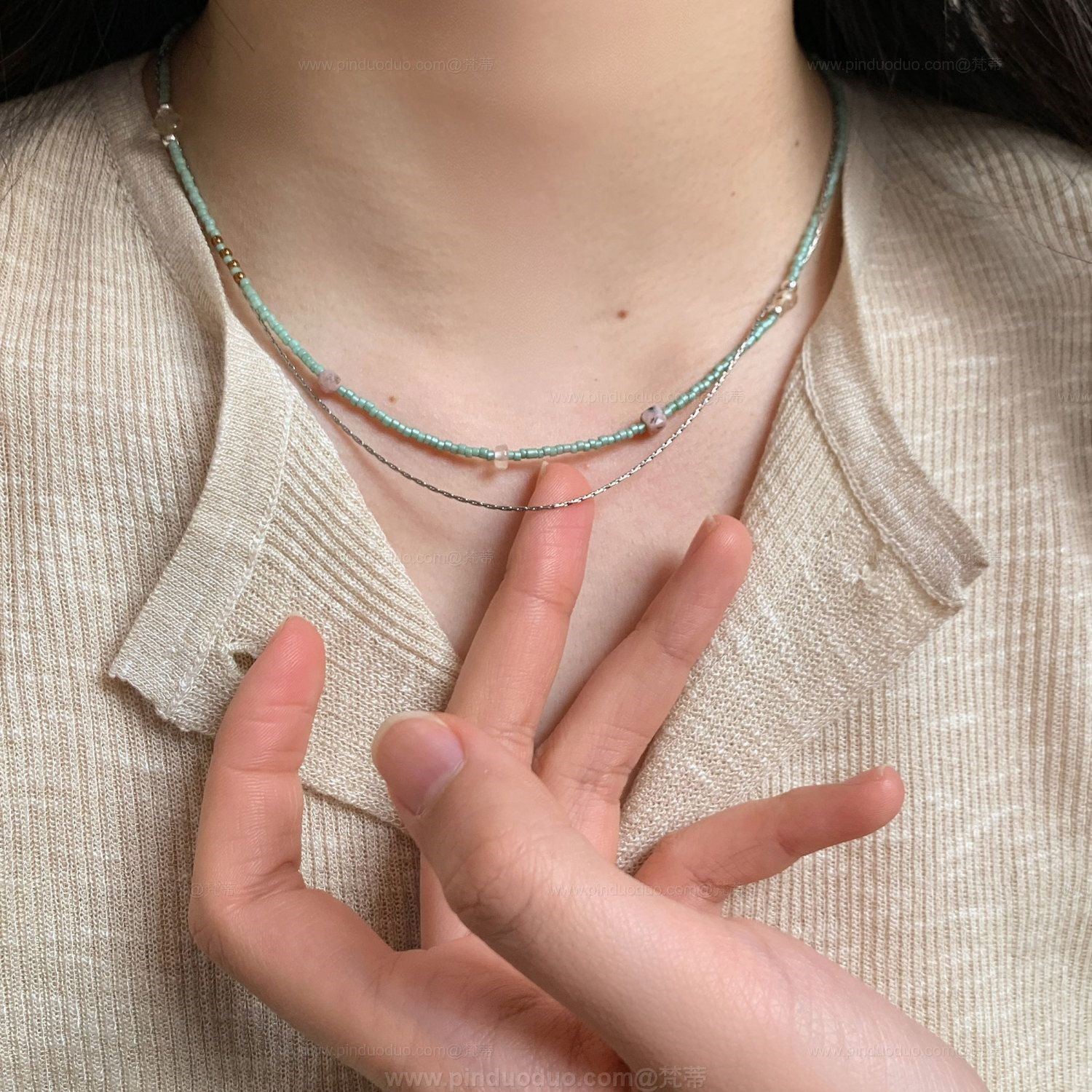 オリジナルの新しい中国風の手作りビーズ二層鎖骨チェーンシンプルなライスビーズハイエンドのパーソナライズされたデザイン春と夏のスタッキングネックレス