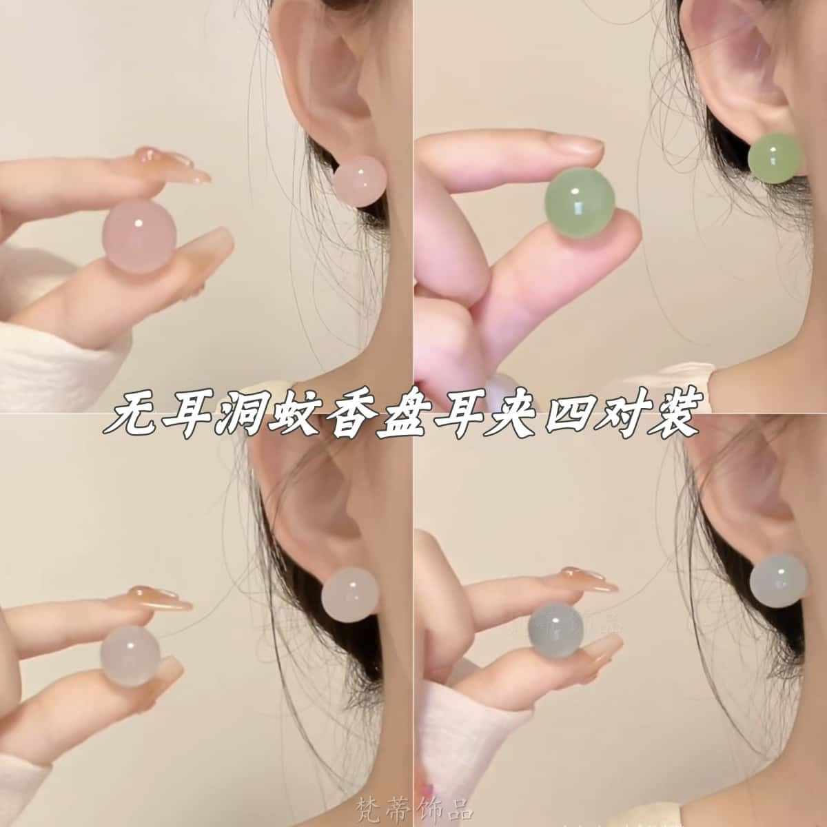 「ライチゼリーパウダー」クリアで保湿性のある蚊よけイヤークリップ、ピアスなし、エレガントで雰囲気のある女性用の新しい中国風イヤリング